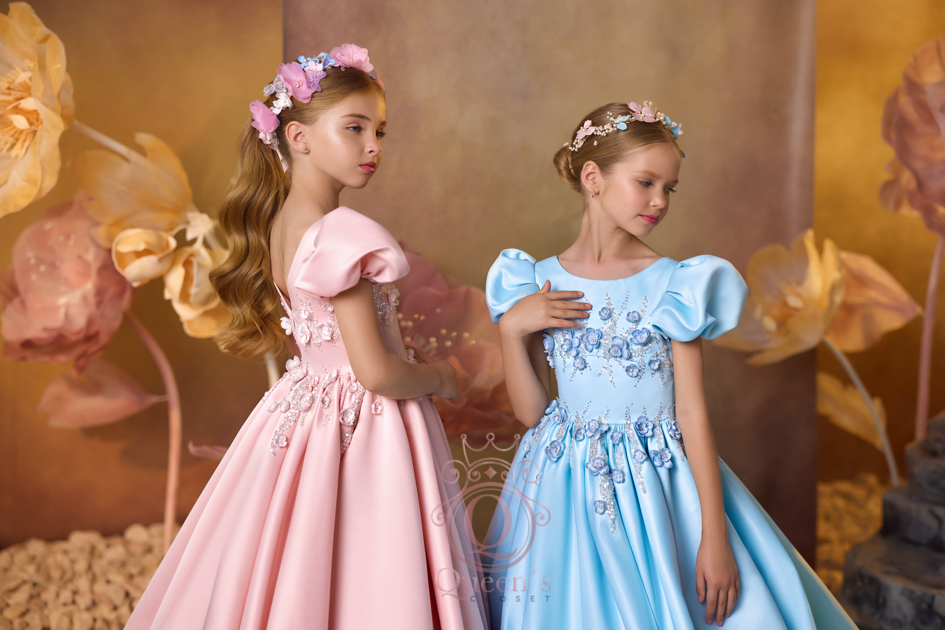 Next to her, the sky-blue gown becomes the breath of a cool breeze —