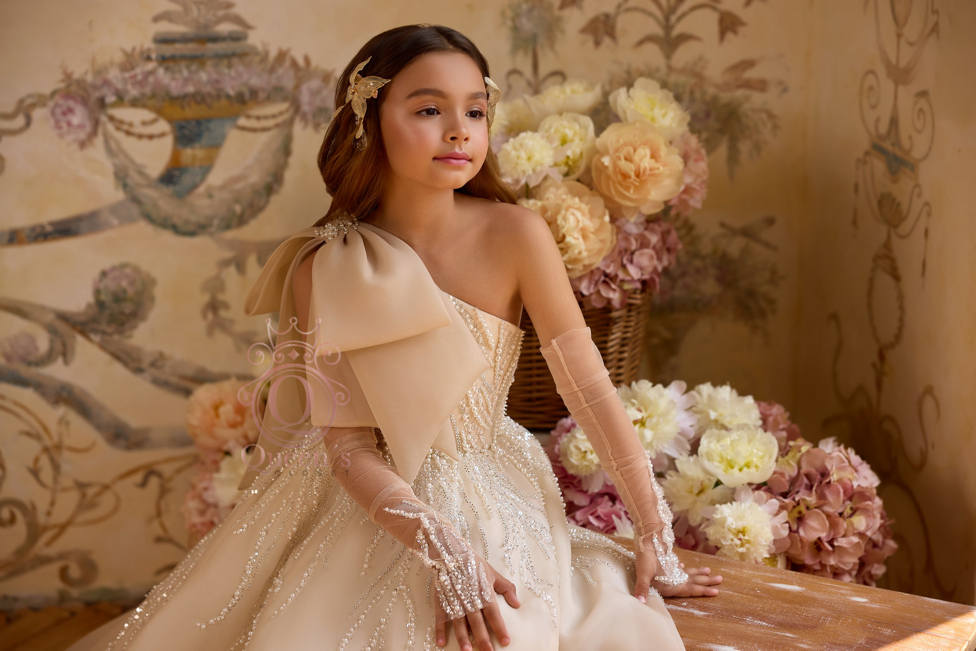 As with every Queen’s Closet creation, this gown is custom-made to the exact measurements of each child, ensuring a flawless fit and unmatched exclusivity. Every piece is new, unique, and tailored with the expertise and artistry that define our luxury brand.