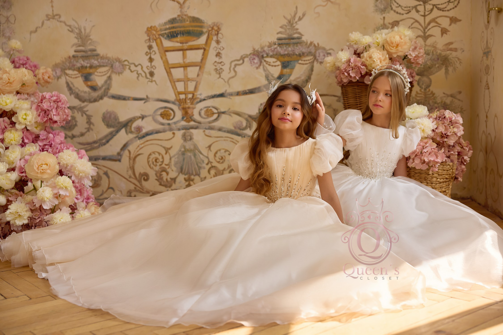 Each dress is exclusively handcrafted and made-to-measure, ensuring a flawless fit and a truly unique piece created specifically for your little girl. With its heavenly details and couture-level craftsmanship, this gown transforms a special moment into an everlasting memory.
