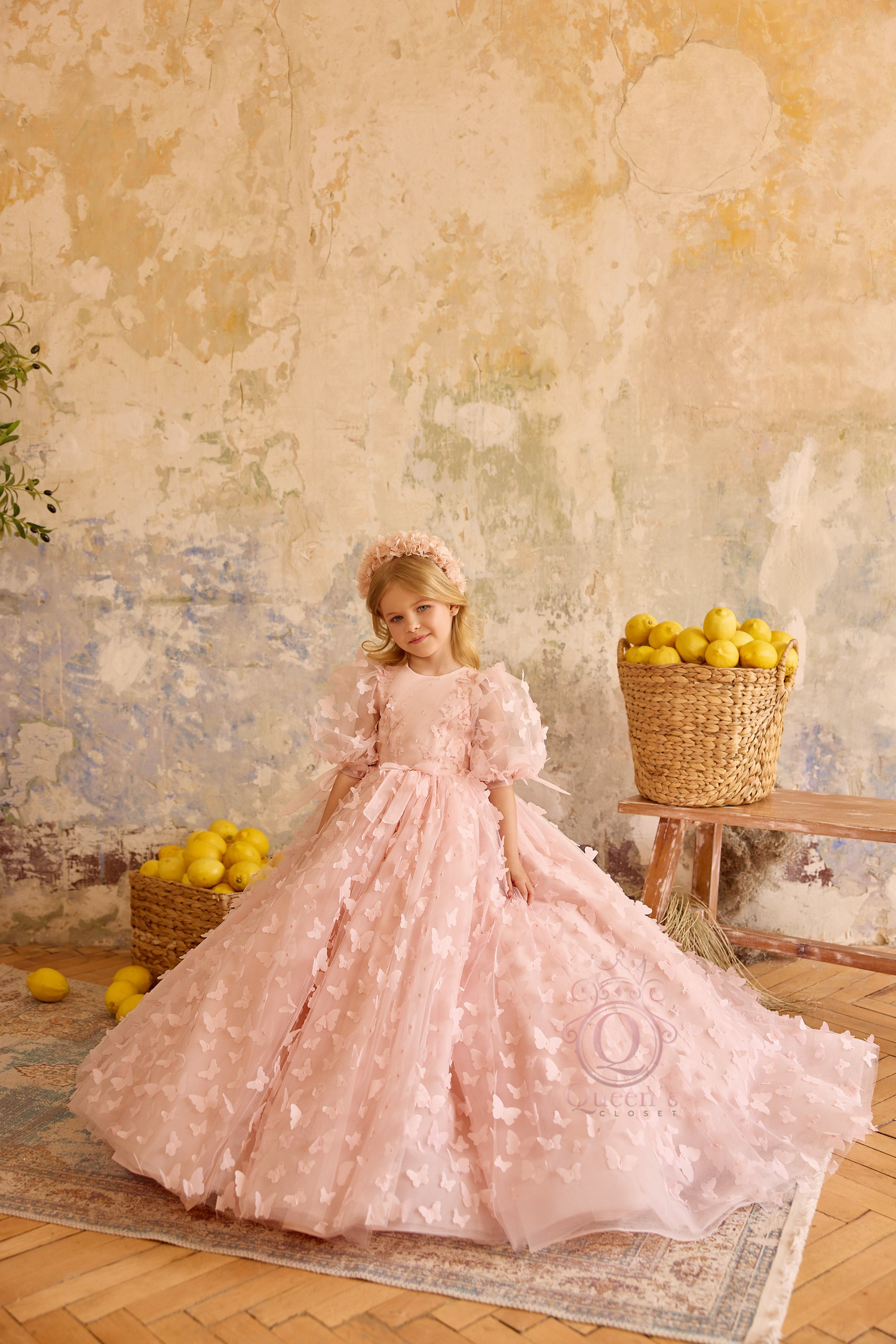 🌸🦋 The Butterfly Bloom Gown 🦋🌸 A dress that feels like springtime whispered into fabric, this design wraps your little girl in a cloud of pastel petals and soft, fluttering butterflies 🩷🦋. Every detail looks as if it drifted gently from a garden of dreams — the kind of magic you only see when the world is quiet and golden 🌿✨.